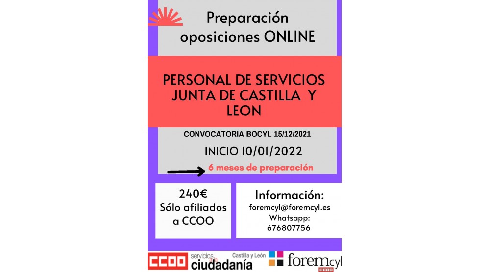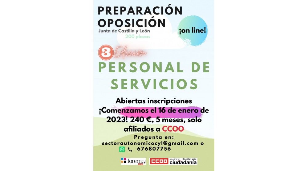 Os comunicamos que vamos a comenzar con la preparación online de la oposición de Personal de Servicios el día...