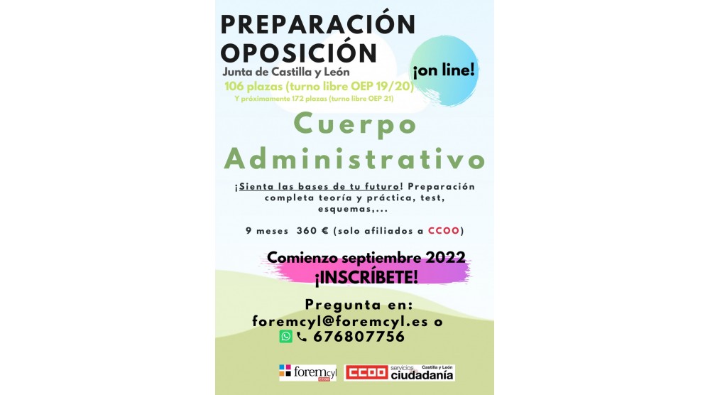 Os comunicamos que vamos a comenzar con la preparación online de la oposición del Cuerpo Administrativo de la JCyL el día 12 de septiembre de 2022. Unos días...