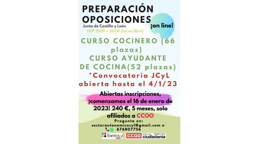 Prepara con nosotros la próxima e inminente convocatoria de Cocinero y de Ayudante de Cocina de la Junta de Castilla y León. Contamos con los mejores...
