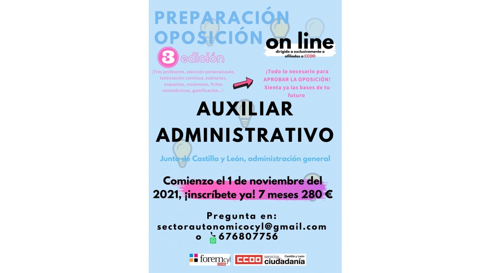 Os comunicamos que vamos a comenzar con la preparación online de la oposición de auxiliar administrativo...